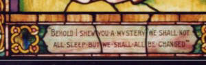 I just spent some time looking at the gap above the inscription plate.(photo below) Oddly, it didn't run through the entire vertical flow, but was isolated to the inscription plate rectangle. Also odd, the border around the inscription plate is a different color than any other border and it only goes around the bottom and sides of the inscription area. So it looks to me like there should be a continuation of this pink border glass across the top so it goes all the way around the inscription rectangle. The width used along the bottom fits perfectly in the gap and I have a good match of the pink ripple glass. So I thought I'd ask your approval for this plan.